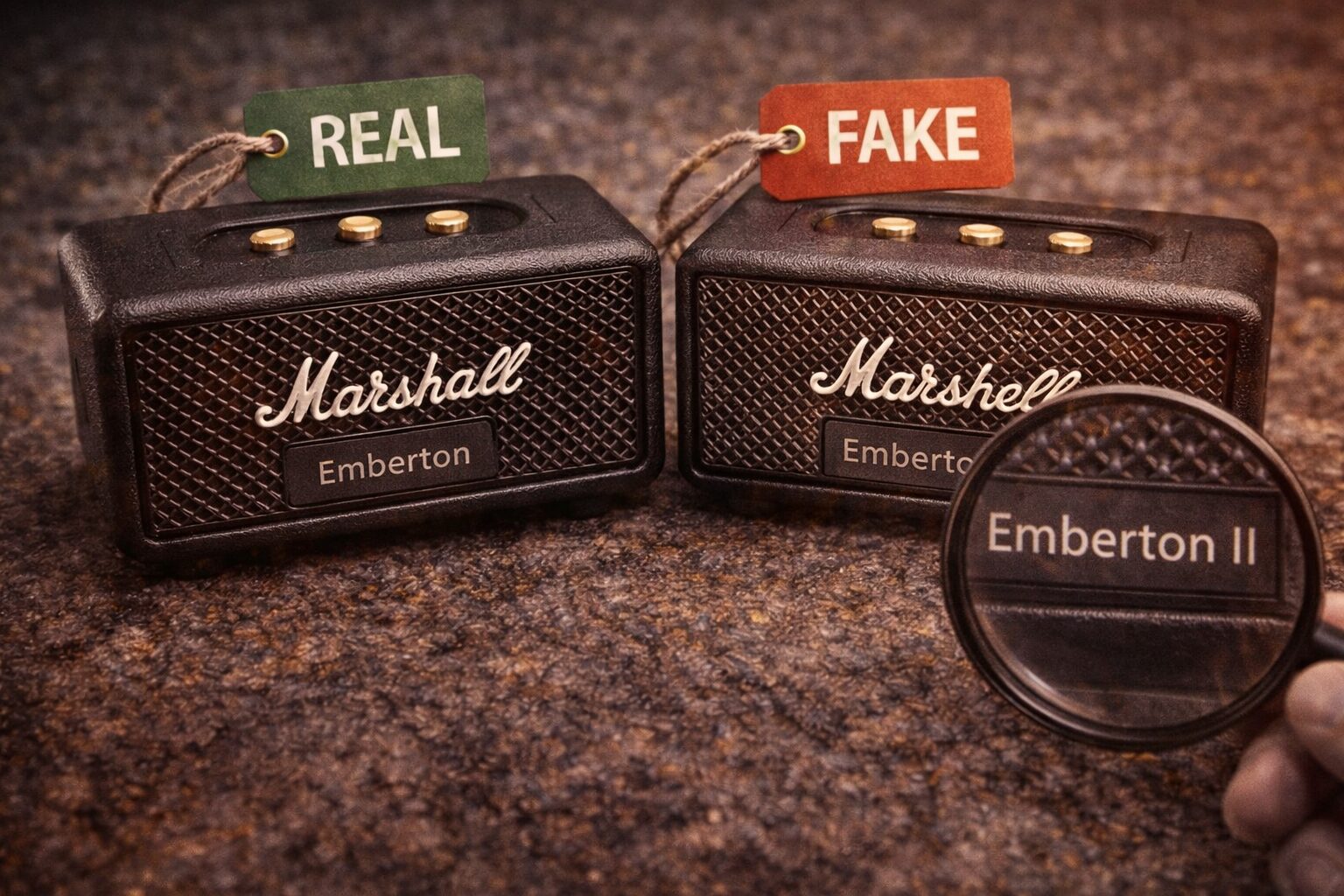私が最初にお伝えしたい結論は、マーシャルのスピーカーの偽物を見分けるときは、外観チェックより購入経路の確認が先ということです。ロゴや箱、質感、ノブの作り、スピーカーグリルの見た目などは、どうしても目につきやすいですし、気になって比較したくなりますよね。でも、そこだけに頼ると、精巧に作られた模倣品に振り回されやすいです。見た目がかなり似ている個体もあるので、写真や短い動画だけで「これは本物」「これは偽物」と言い切るのはかなり危ないかなと思います。